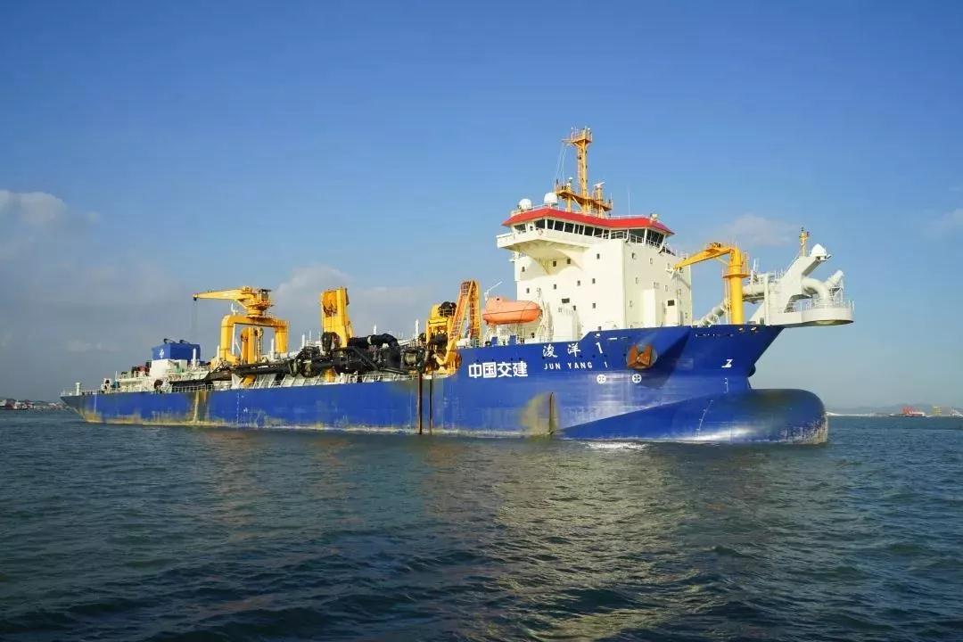 中交广航局介绍,“浚洋1”具有强大的疏浚能力,每小时挖泥约2万立方米,相当于在一个国际标准足球场上堆起一层楼高的泥沙量。它的耙臂最长可以伸到海底90米处挖泥,相当于一栋30层住宅楼的高度。