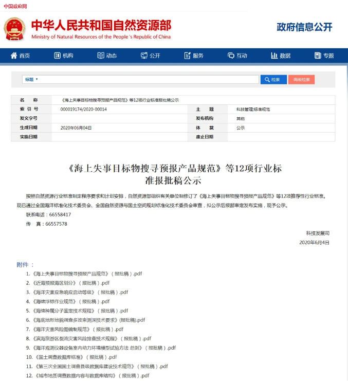 6月4日,自然资源部在网站上公示了12项推荐性涉海行业标准。