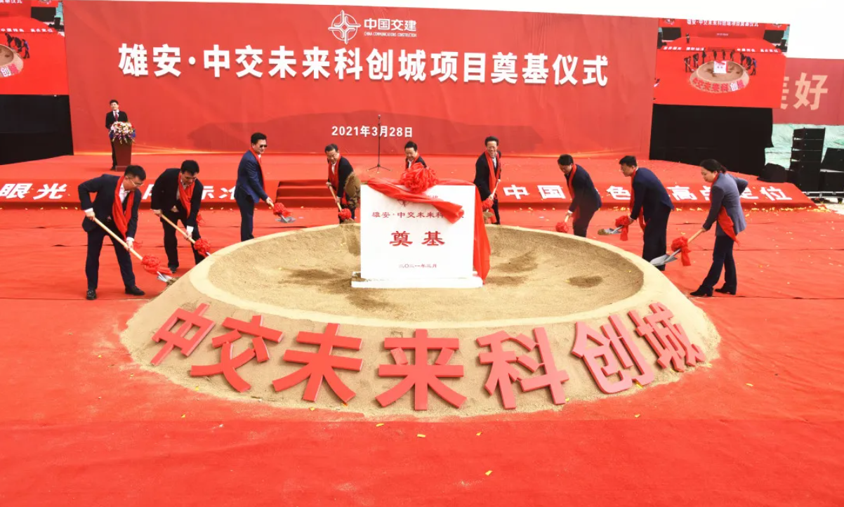 3月28日,中交未来科创城项目奠基仪式在雄安新区举行,标志着雄安站枢纽片区3号地块正式开工建设。中交集团党委常委、副总经理文岗出席仪式并宣布奠基,中国交建总经济师赵喜安,中国雄安集团有关领导参加奠基仪式。