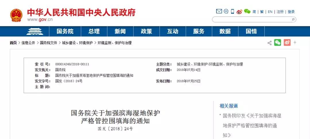 2018年,最受行业关注的无疑是被称为“史上最严”的围填海管控。今年一月初,中国海洋报记者从国家海洋局围填海情况新闻发布会上获悉,结合国家海洋督察整改工作,国家海洋局将聚焦“十个一律”,“三个强化”,采取史上最严围填海管控措施;七月中旬,国务院正式印发《关于加强滨海湿地?;ぱ细窆芸匚詈5耐ㄖ?,通知明确,完善围填海总量管控,严格审批程序;取消围填海地方年度计划指标,除国家重大战略项目涉及围填海的按程序报批外,全面停止新增围填海项目审批。