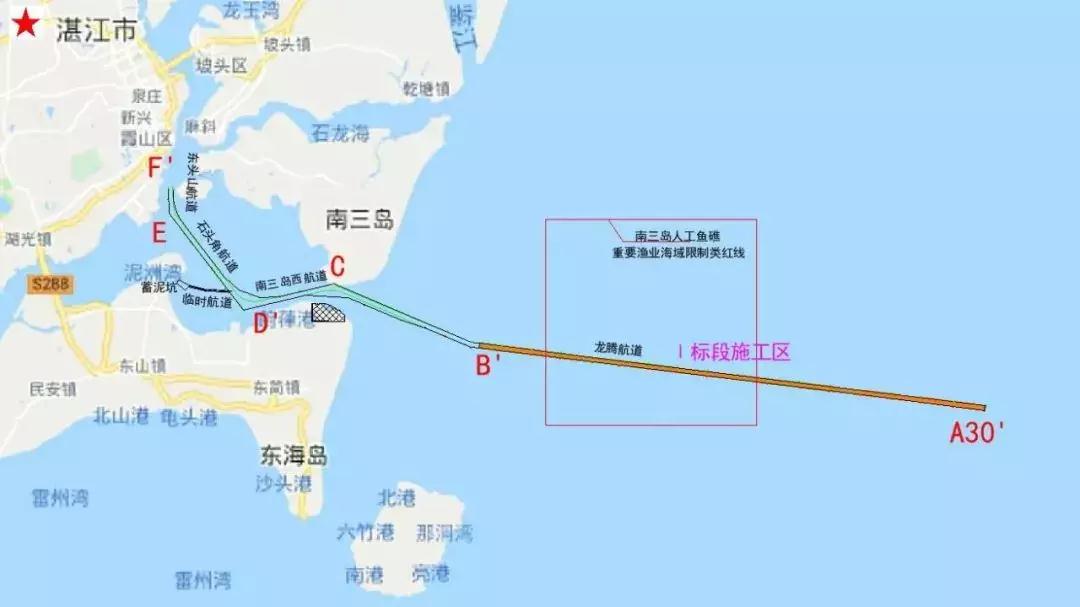 湛江港30万吨级航道改扩建工程是在现有30万吨级航道基础上进行拓宽、浚深和延长,按照30万吨级船舶满载乘潮单向通航标准建设,兼顾10万吨船舶和15万吨级散货船全潮通航的双向通航,主航道全长64.1公里,通航宽度340米。公司中标的标段,位于湛江港30万吨级航道改扩建工程最外段,施工内容包括龙腾航道部分航段的疏浚工程、航标工程和环境监测工程等,基建工期为635日历天,试运行期维护1年。