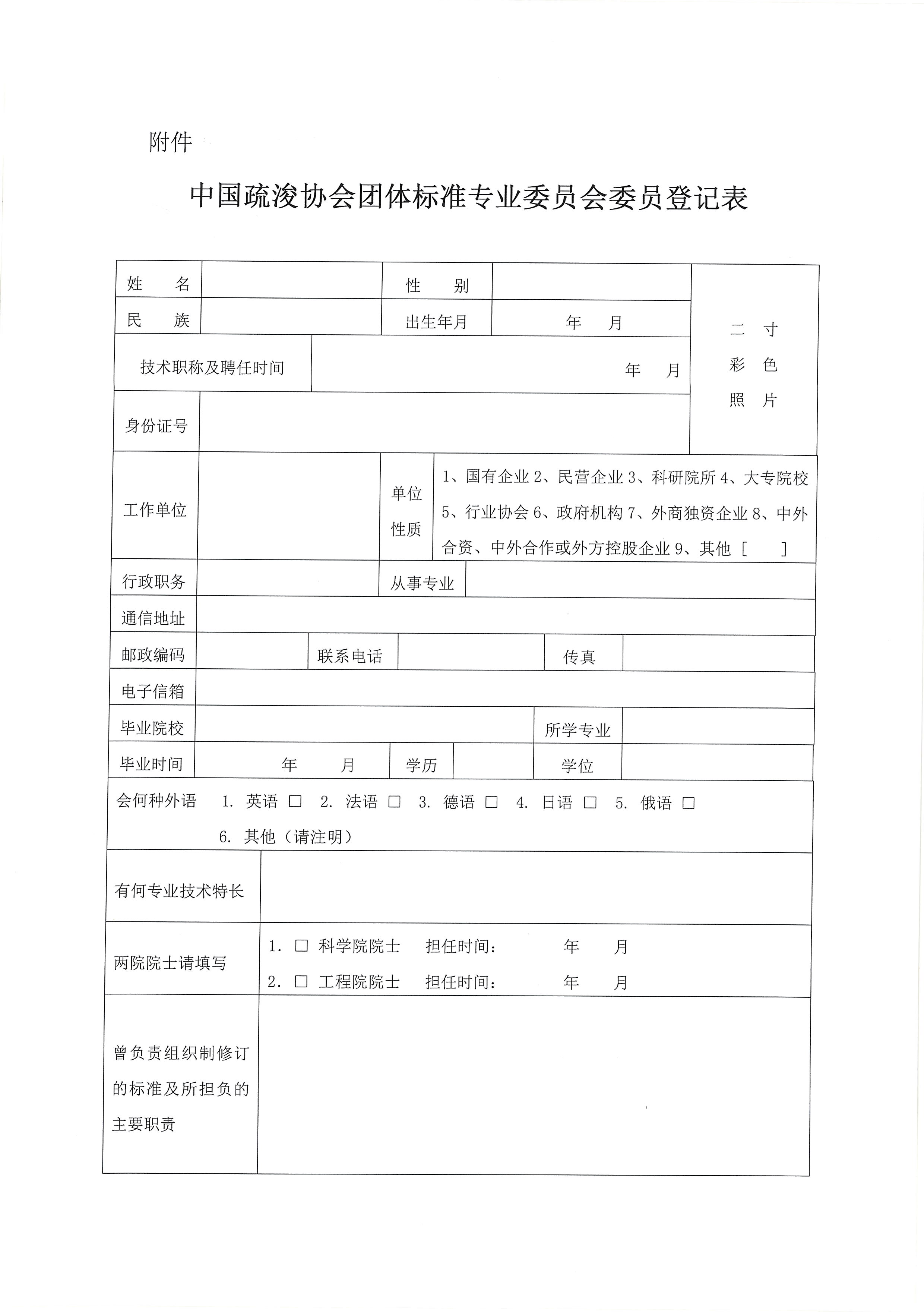 附件下载:中国疏浚协会团体标准专业委员会委员登记表