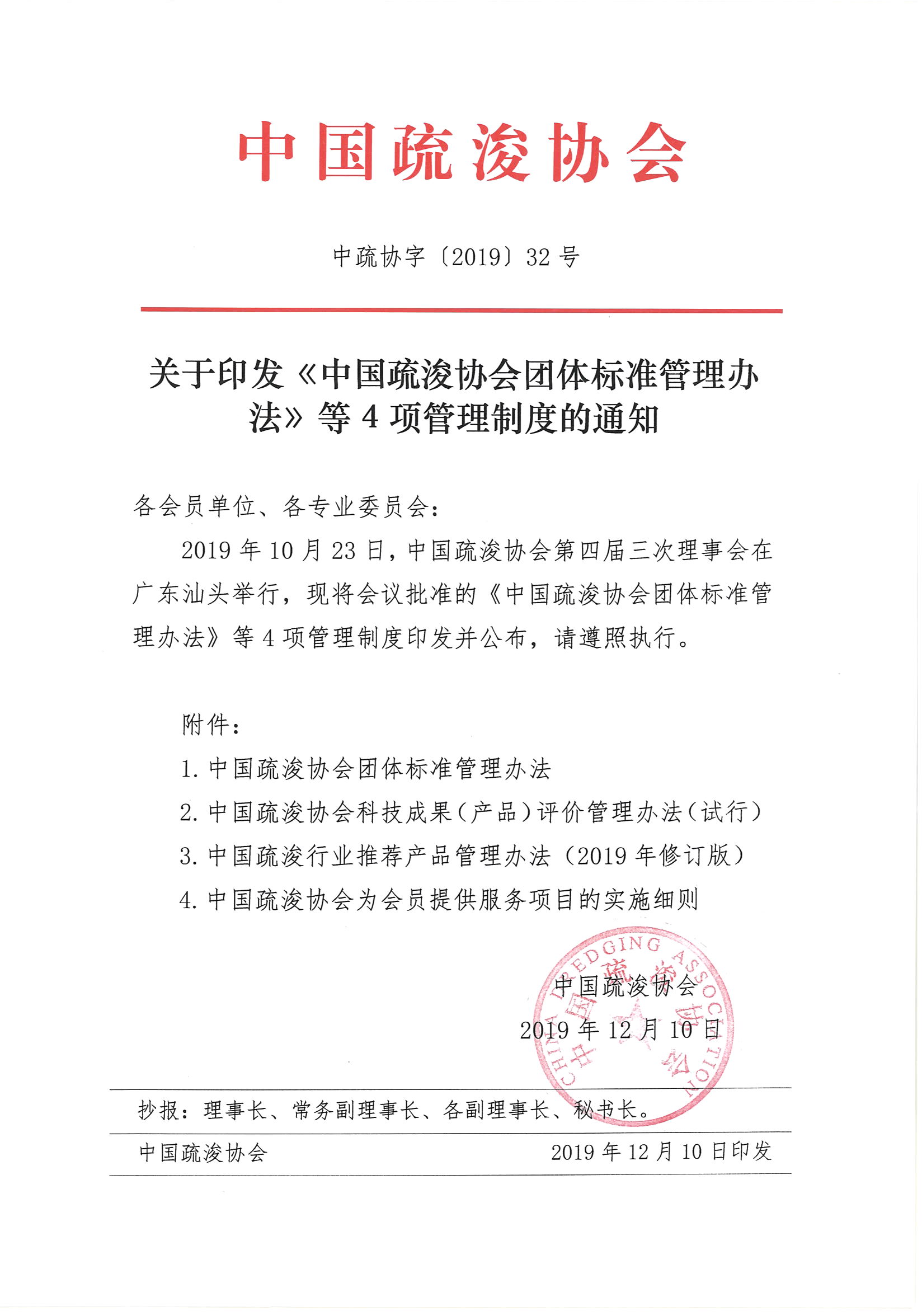 关于印发《中国疏浚协会团体标准管理办法》等4项管理制度的通知