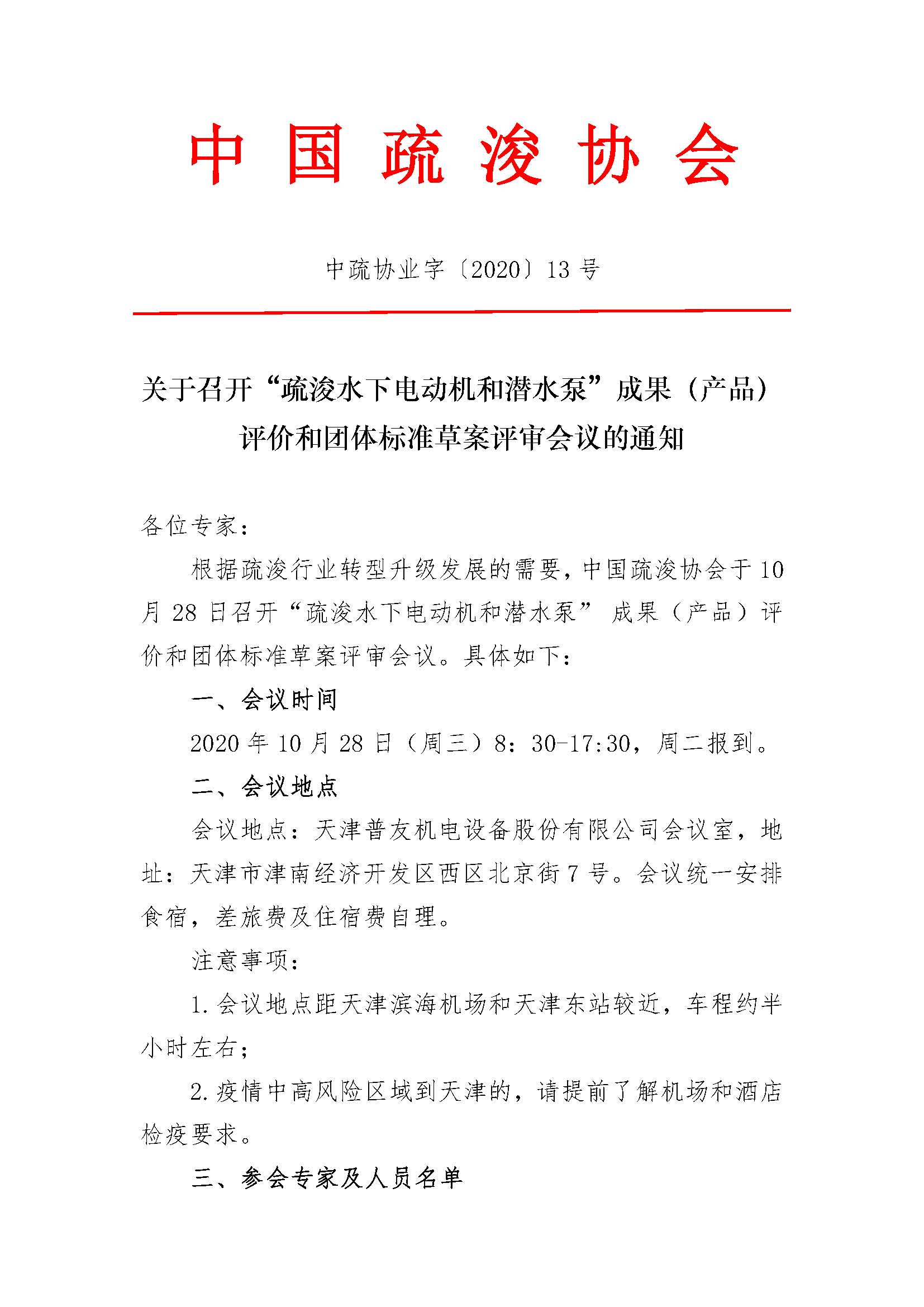 关于召开“疏浚水下电动机和潜水泵”成果(产品)评价和团体标准草案评审会议的通知-发布
