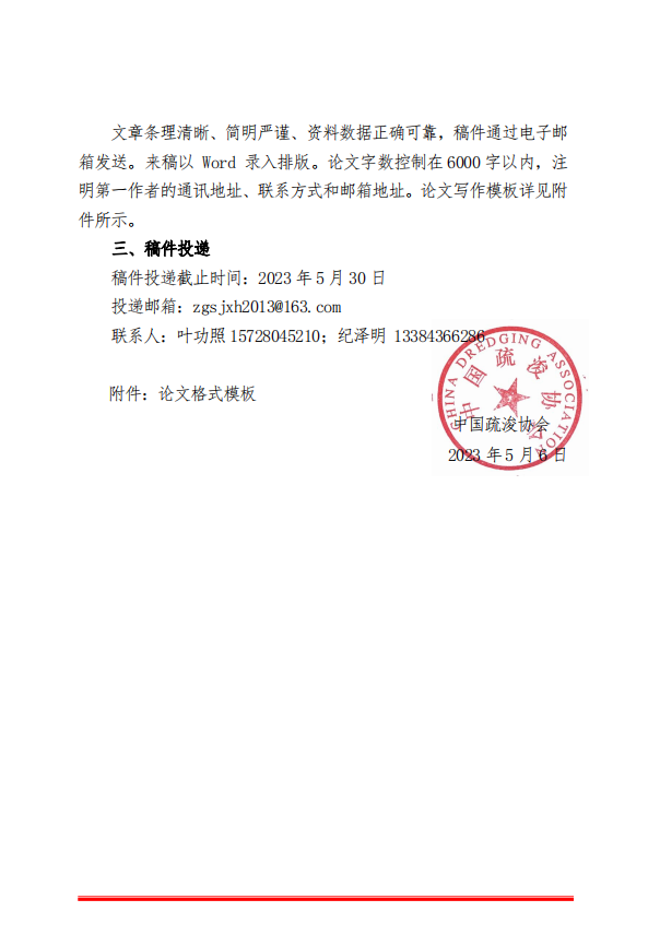 《第六届国际疏浚技术发展会议论文集》征稿函