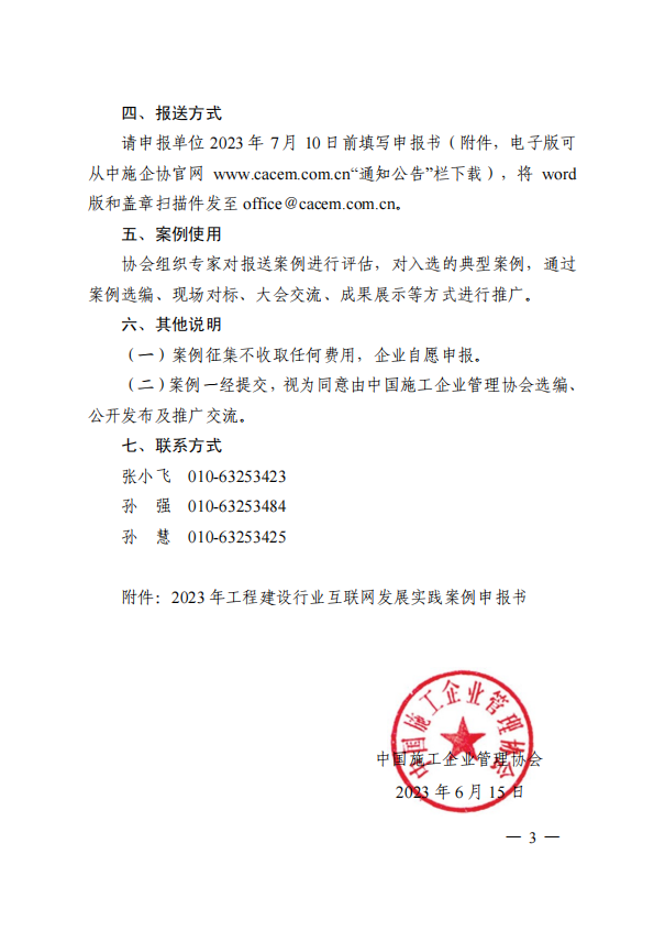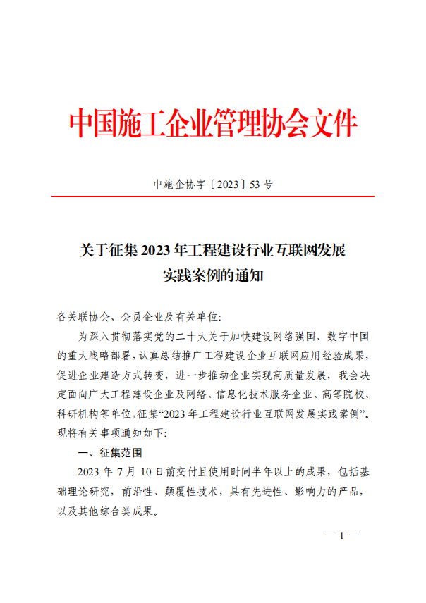 关于征集2023年工程建设行业互联网发展实践案例的通知