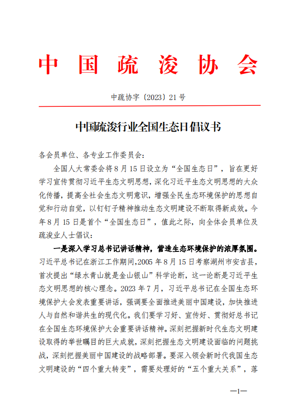 中国疏浚行业全国生态日倡议书