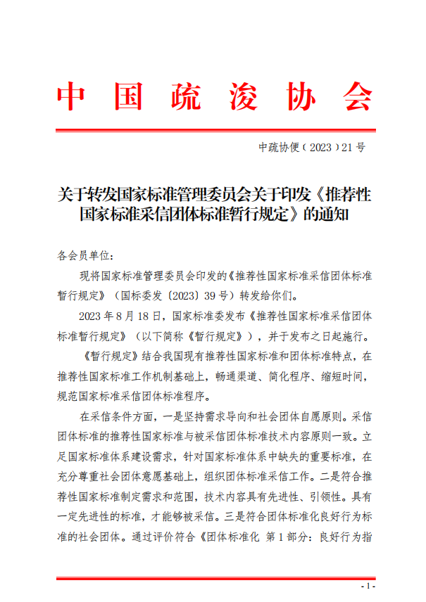 关于转发国家标准管理委员会关于印发《推荐性国家标准采信团体标准暂行规定》的通知