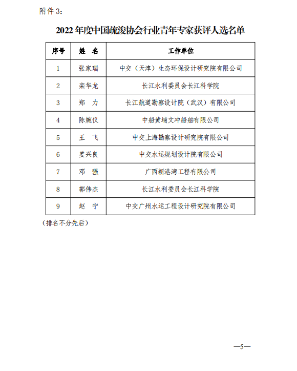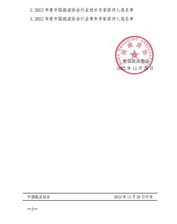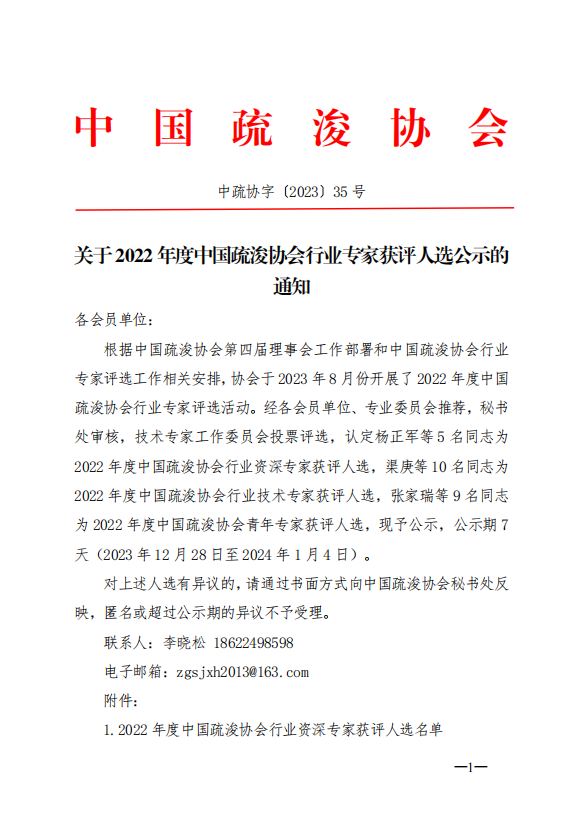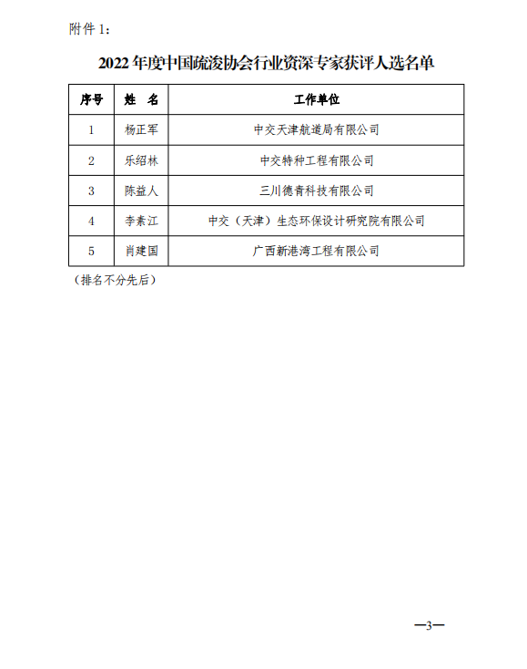 关于2022年度中国疏浚协会行业专家获评人选公示的通知
