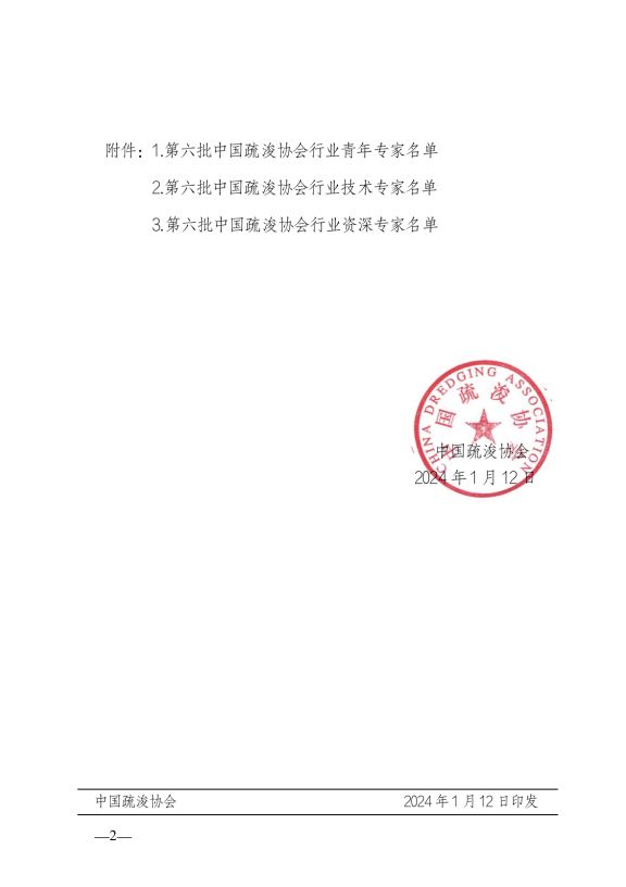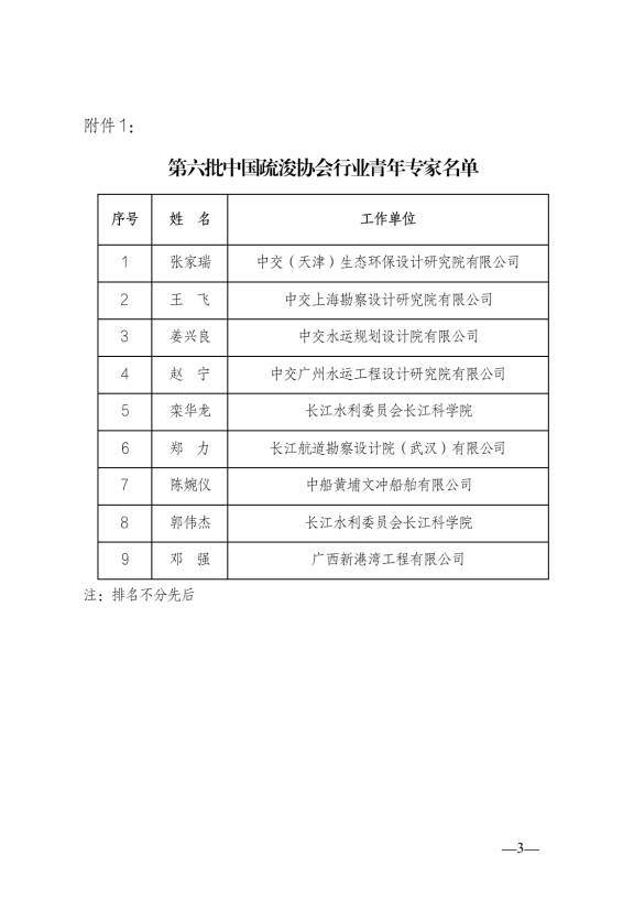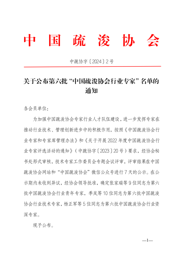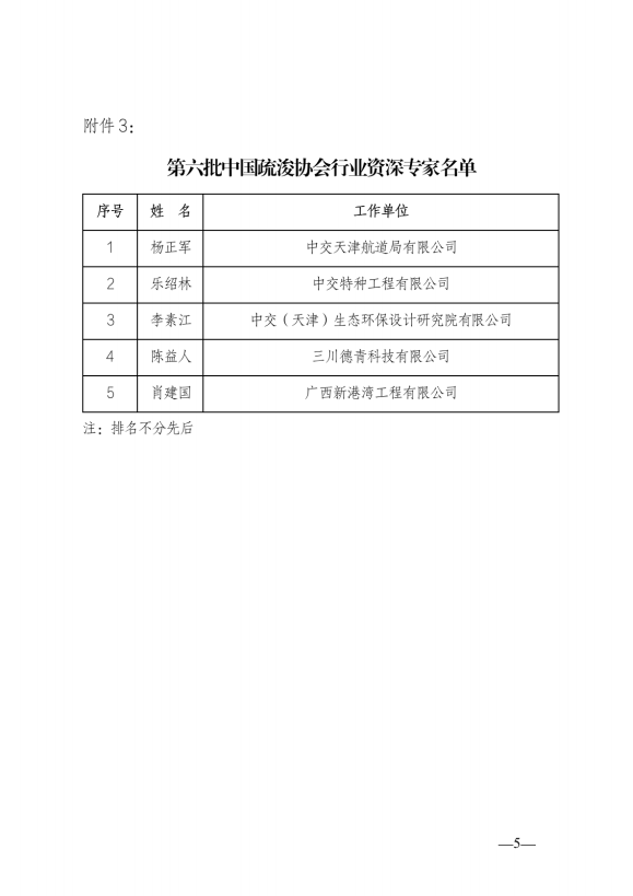 关于公布第六批“中国疏浚协会行业专家”名单的通知