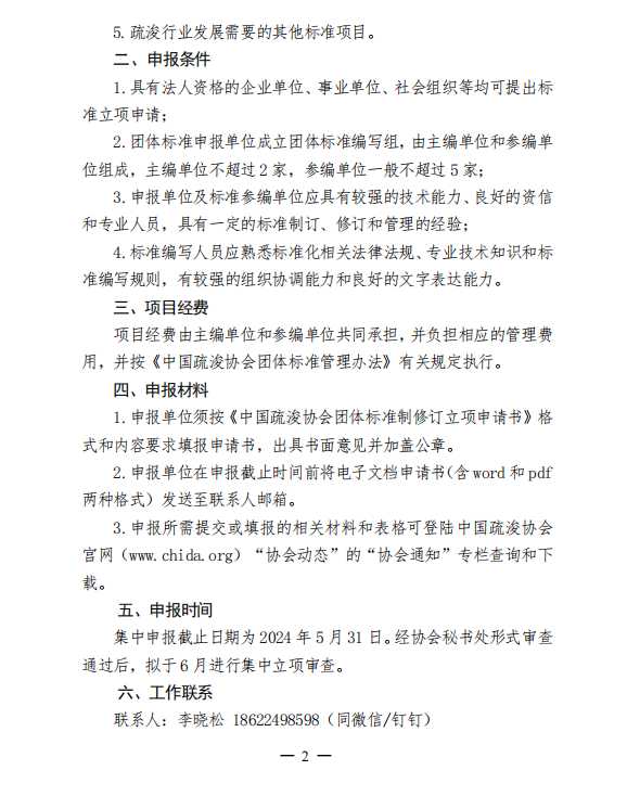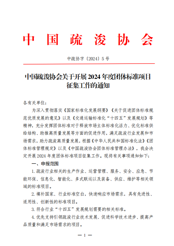 中国疏浚协会关于开展2024年度团体标准项目征集工作的通知