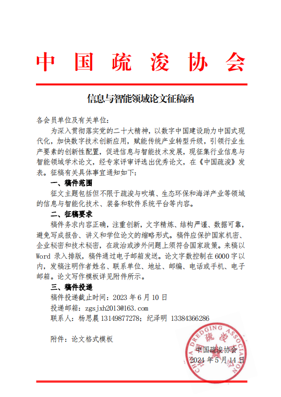 中国疏浚协会信息与智能专业委员会征稿函