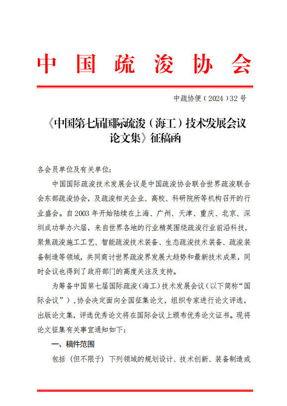 《中国第七届国际疏浚(海工)技术发展会议论文集》征稿函