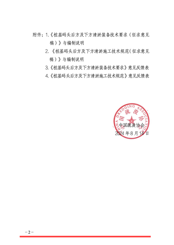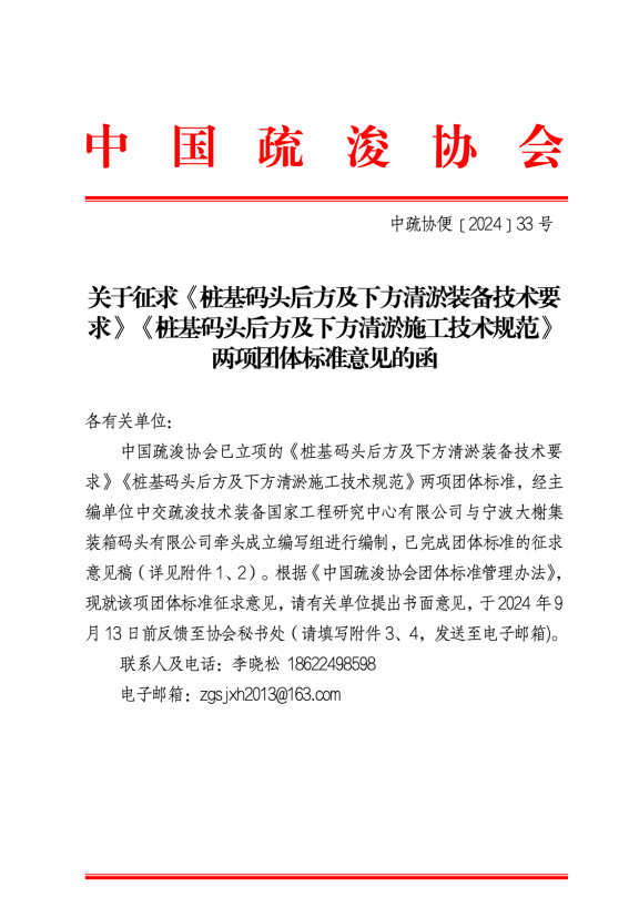 关于征求《桩基码头后方及下方清淤装备技术要求》《桩基码头后方及下方清淤施工技术规范》两项团体标准意见的函