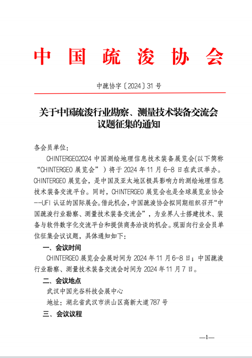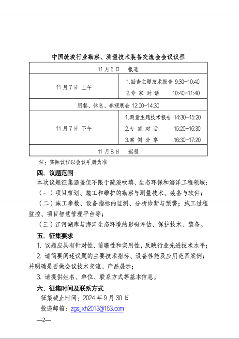 关于中国疏浚行业勘察、测量技术装备交流会 议题征集的通知