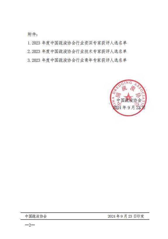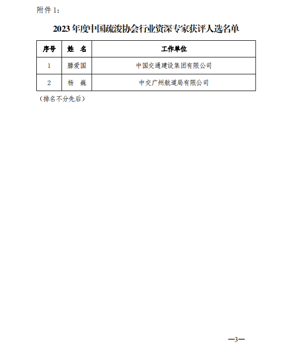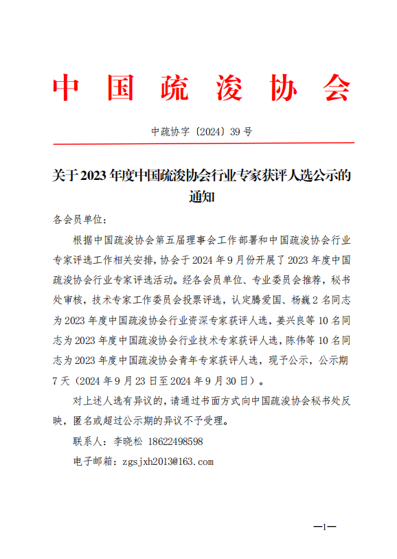 关于2023年度中国疏浚协会行业专家获评人选公示的通知
