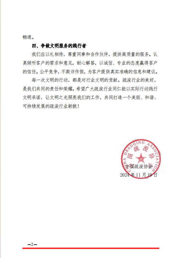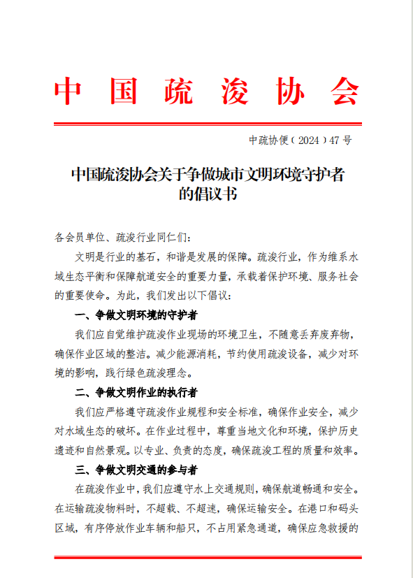 中国疏浚协会关于争做城市文明环境守护者的倡议书