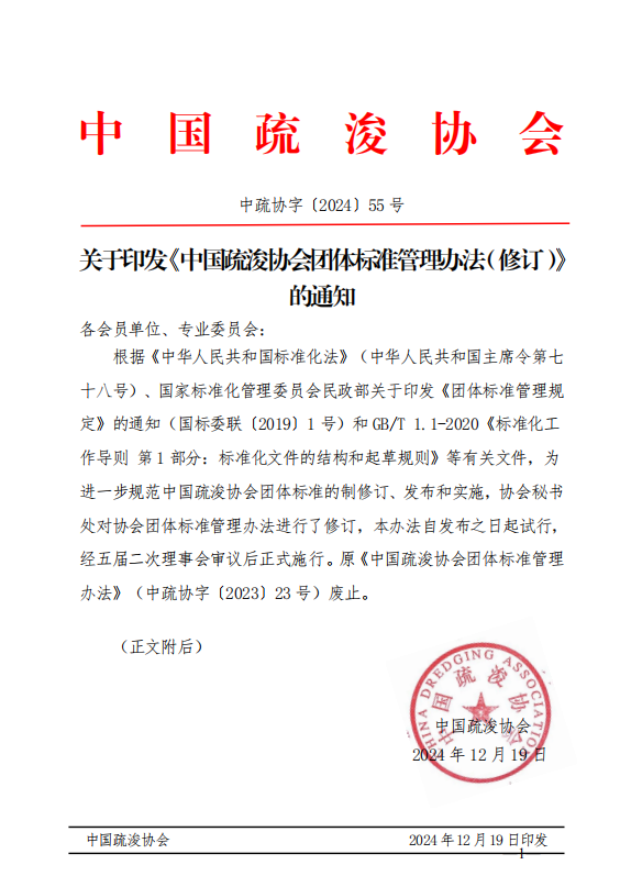 关于印发《中国疏浚协会团体标准管理办法(修订)》的通知