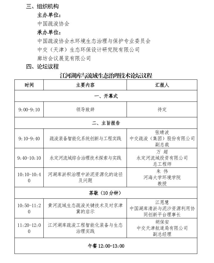 关于举办“江河湖库与流域生态治理技术论坛” 第三次通知