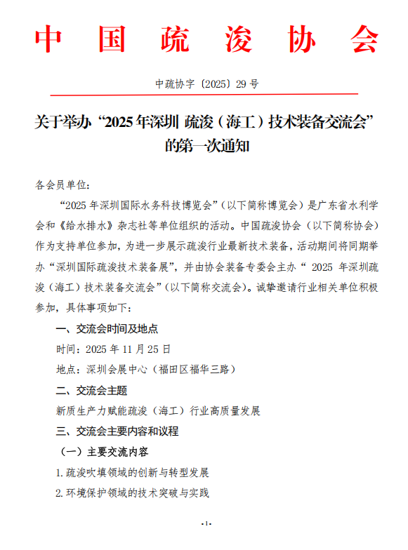 关于举办“2025年深圳疏浚(海工)技术装备交流会”的第一次通知