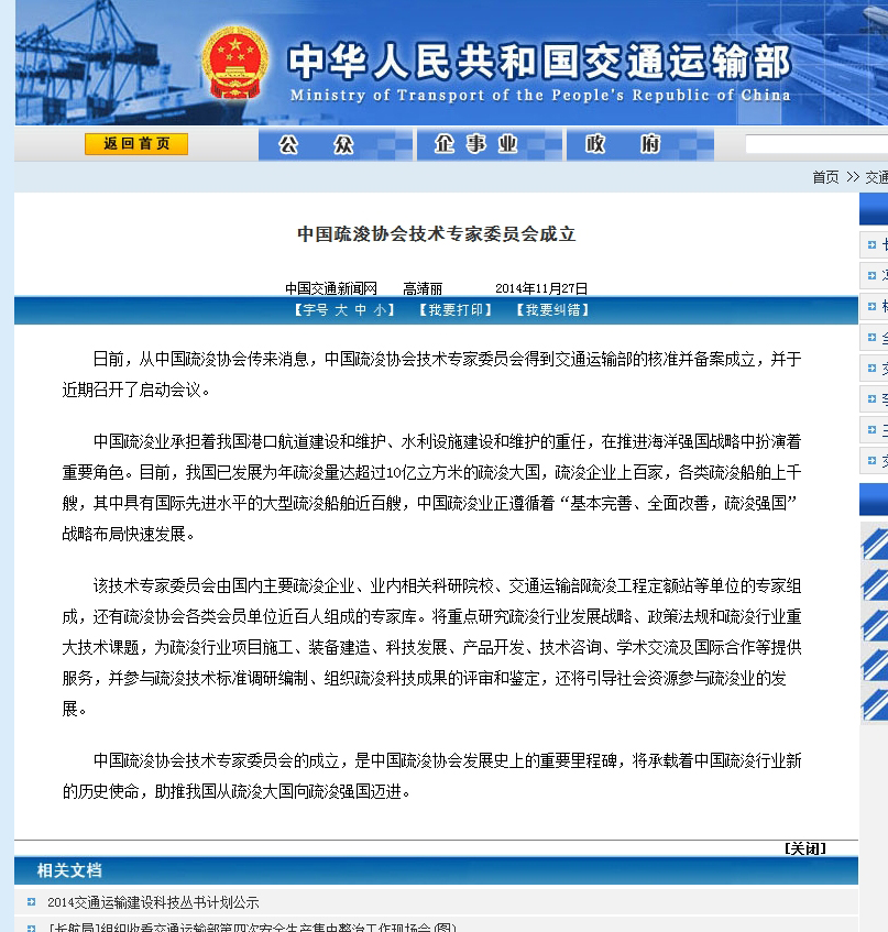 11月25日中国交通报和交通运输部网站分别报道我会成立技术专家委员会。报道原文如下。